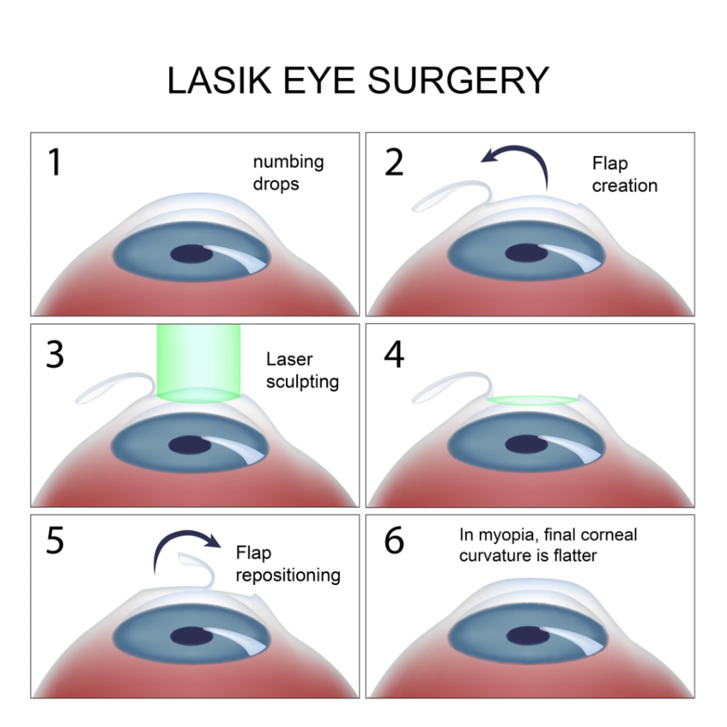 LASIK eye surgery involves creating a flap in the cornea to access the deeper layers of the cornea.